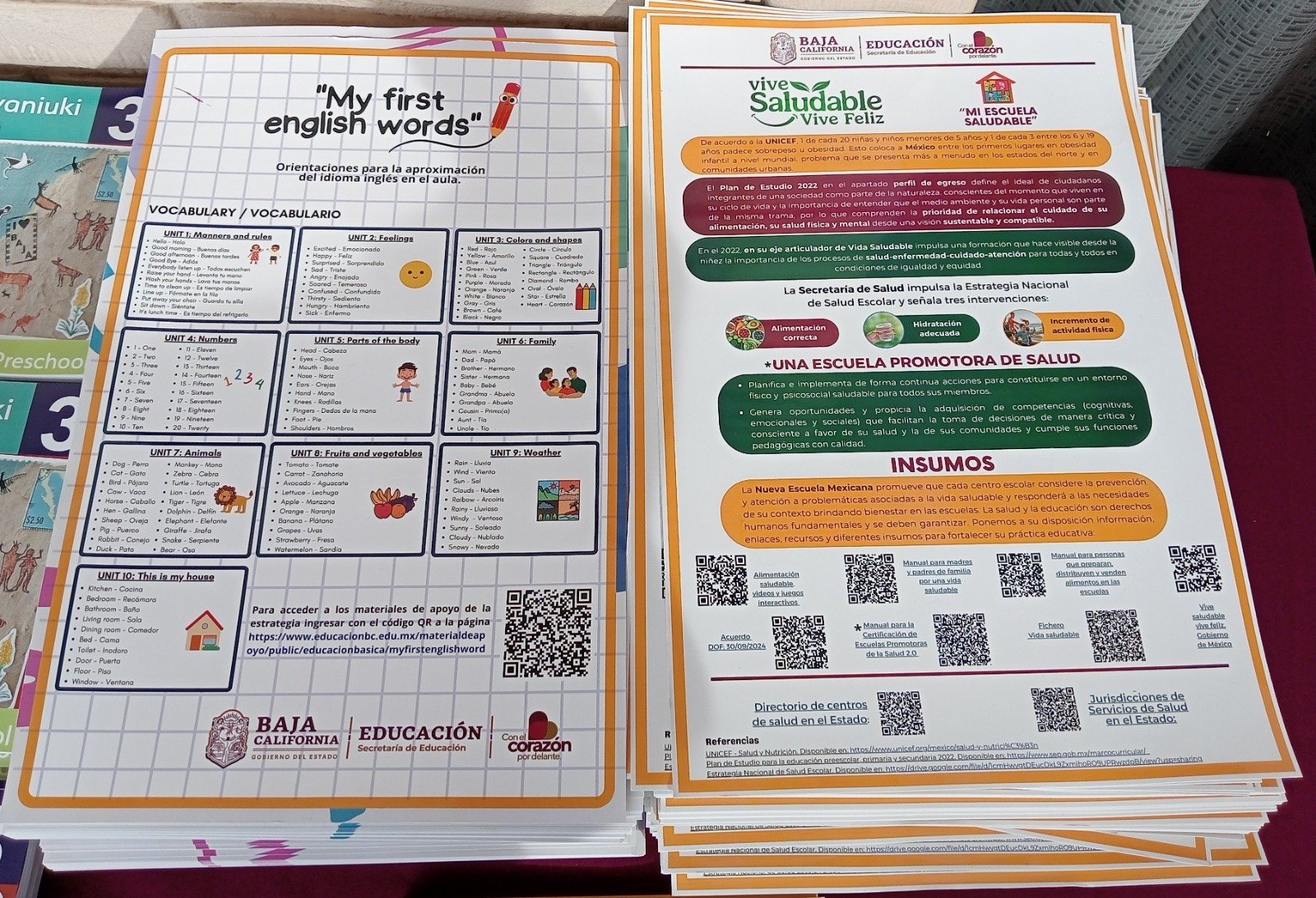 Completó que entre los materiales didácticos que recibieron las y los docentes se encuentran: vocabulario, flash cards, materiales impresos, juegos interactivos, videos, canciones, actividades sugeridas para reforzar en el aula y tareas para reforzar en casa.